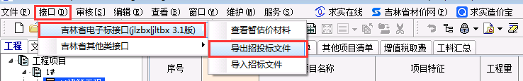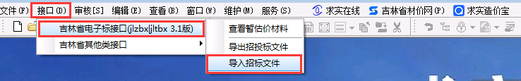 选择与招标文件对应电子标接口进行导入jlzbx文件