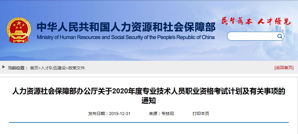 为进一步做好专业技术人员职业资格考试的规划与管理,便于广大专业技术人员参加职业资格考试,经商有关部门同意,现就2020年度专业技术人员职业资格考试计划及有关问题通知如下:
