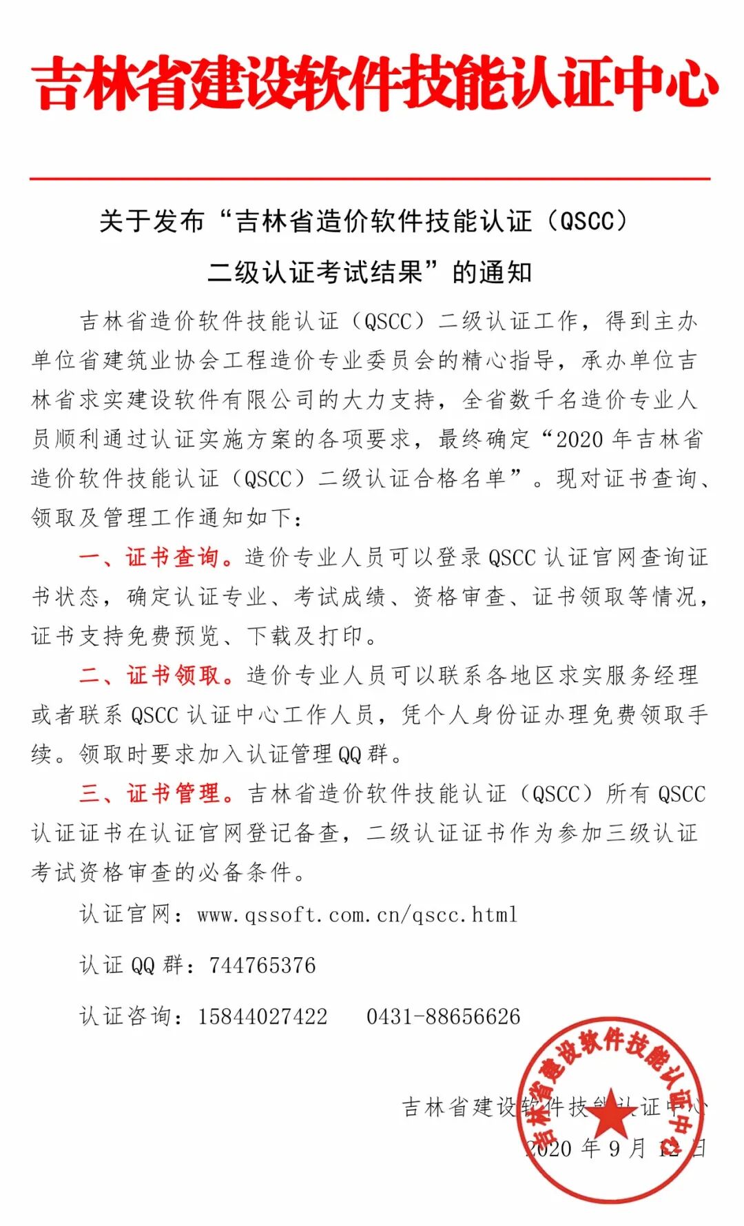 发布QSCC认证二级考试结果